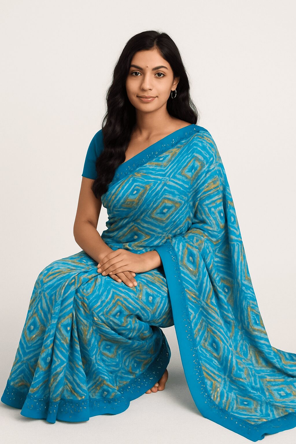 Be the first to review “Blue Printed Georgette Saree with Abstract Design”