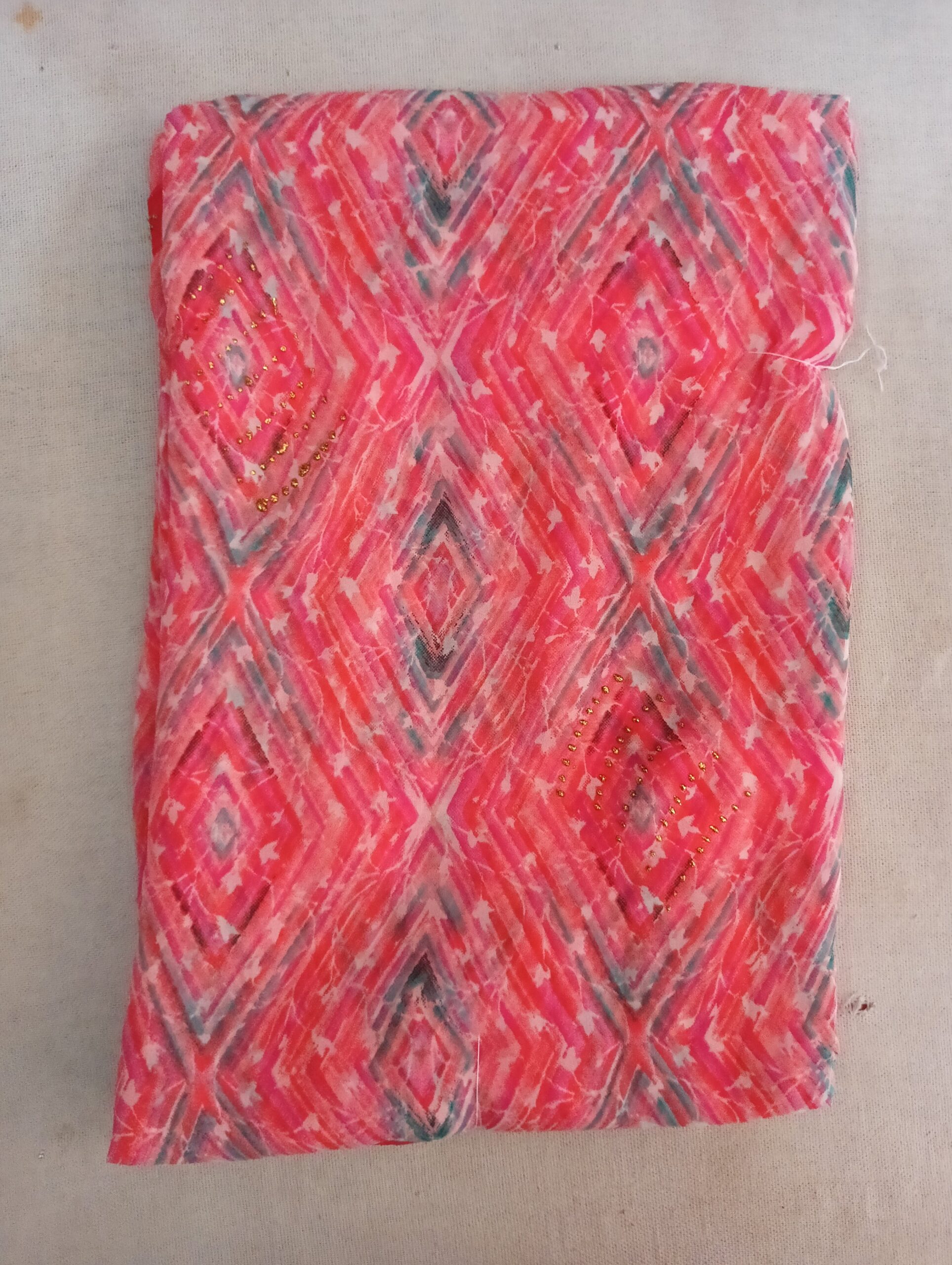 This exquisite pink printed georgette saree showcases a captivating abstract design that effortlessly blends modern aesthetics with traditional elegance. The saree is framed by a solid color border, which is adorned with sparkling Swarovski crystals, adding a touch of luxury and sophistication to the overall look. Crafted from soft, breathable fabric, this saree ensures maximum comfort, making it perfect for both festive occasions and everyday wear. The lightweight material drapes beautifully, allowing for ease of movement while maintaining a graceful silhouette. Whether you’re attending a wedding or a casual gathering, this saree is sure to make a stunning statement, combining style and comfort in one remarkable piece.